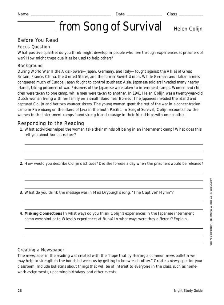 Glencoe Mcgraw Hill Night Study Guide Answers